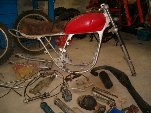 gas 62 a écrit :Hé bien voila ! Lors de ma présentation sur ce site on ma gentiment proposé de faire un topic parlant du huitième de litre enduro de 76.J'ai donc eue la chance de récupérer cette machine il y a quelques années avec son carton.A l'époque je l'ai démonté et remisé le temps de rassembler quelques pièces essentiels.Je doit avouer que mon crédo c'est plutôt les italiennes,mais c'est aussi les 125 (même si j'ai le permis grosse)et une KT de 76 avec le type 51 bah ça fait quand même partie de l'histoire de l'enduro en france et que ça a de la gueule. Et en plus ça me permettrais de rouler en C1 ! Ouah,trop bien !!!Bon j'vous met quelque photos même si elle est en morceaux. Une petite question déja:c'est quoi les RAL du cadre et du reservoir ?