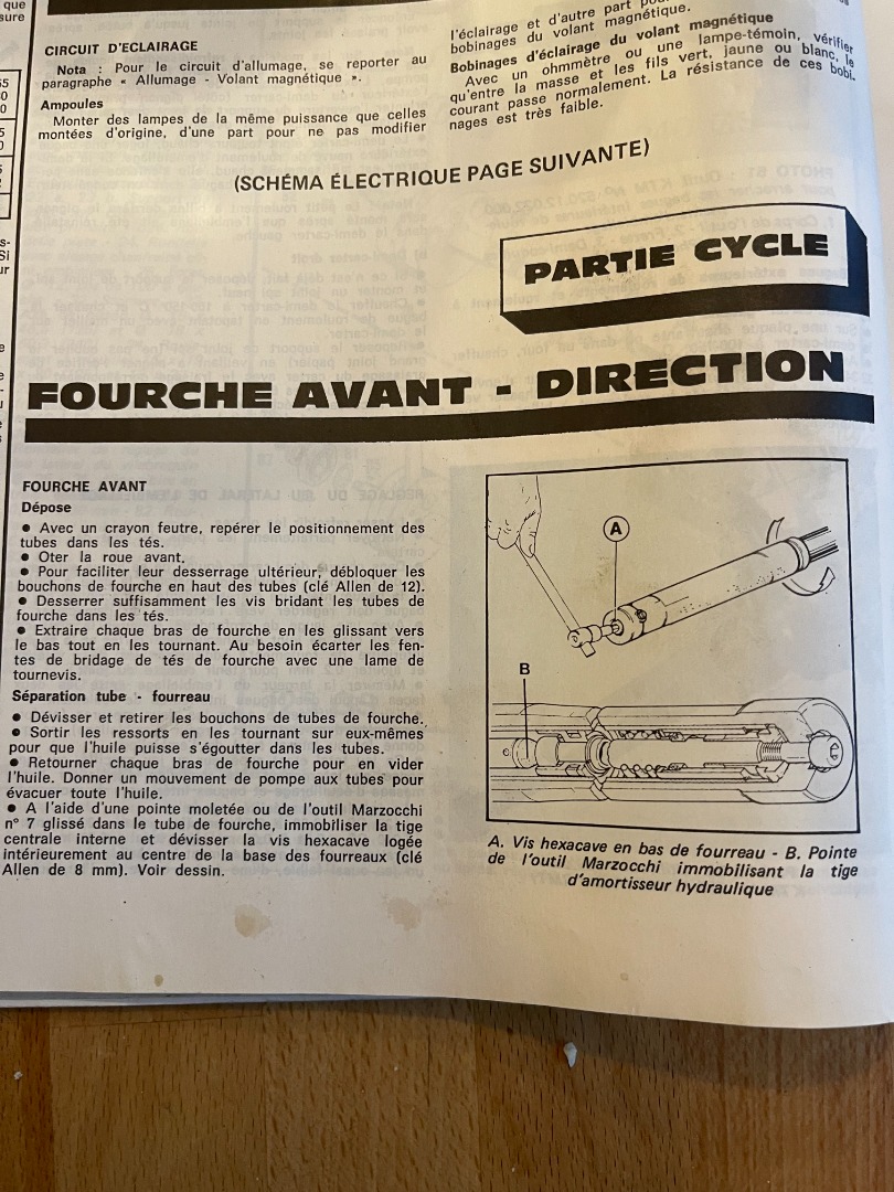 Source magazine Enduro Classic n°3 , conseil de Michel : " l' erreur habituelle est de vidanger... et d'enlever les ressorts (ce que faisait ...censuré )...laisse tout en place afin que le ressort comprime le circuit hydraulique et la vis BTR se dévisse plus facilement .