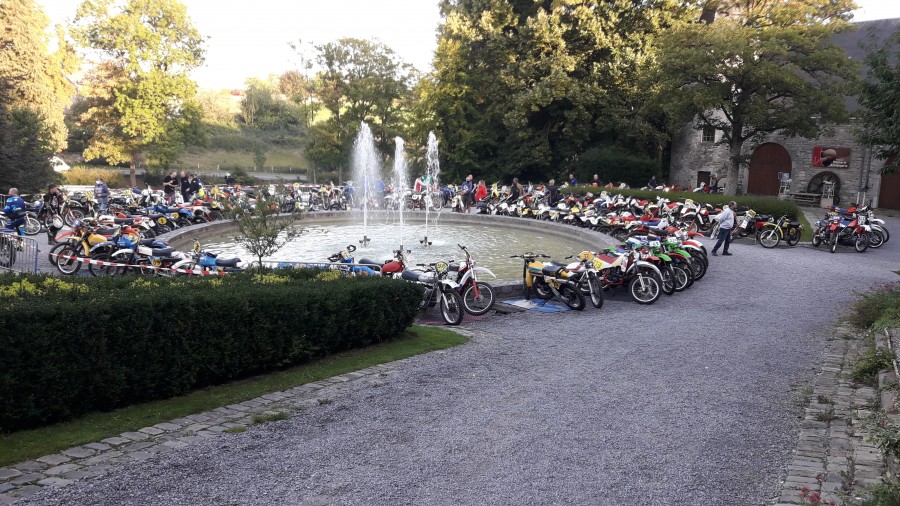 Gros contingent étranger dans les 180 participants , nous sommes juste à un jet de caillou de l'Allemagne et des Pays bas . Les Allemands , très friands de ce genre d'épreuve pour motos anciennes , représentent + de 50 % des troupes .