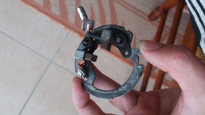T'as réussi à ressouder la tresse sur les charbons? Il faut un fer qui envoie grave pour que ça tienne. Moi j'avais galéré à cause de ça sur un démarreur de 4L.