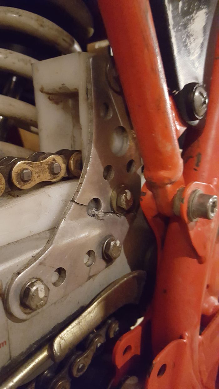 en revisant la moto j'ai trouvé de la casse au niveau de la tole tenant le guide chaine: