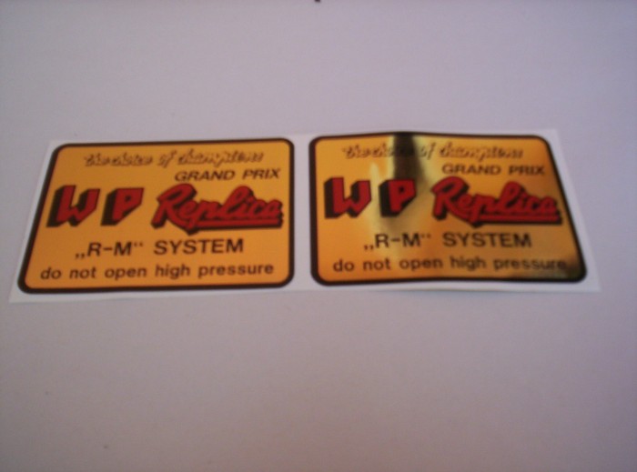 Here is a photo of them apart. I always find broken shims and rebound springs in these shocks :/ I am looking for the 'WP Grand Prix Replica' stickers