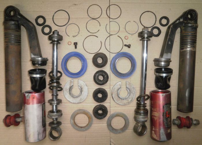 For the rubber bladders, they can be replaced with WP # 3612.0024 - separation piston d42. This part can be bought from KTM dealers. You also need # 3612.0466 - O-ring Viton 32 x 5 and # 4681.0022 - Piston ring 3.9 x 1.5x124