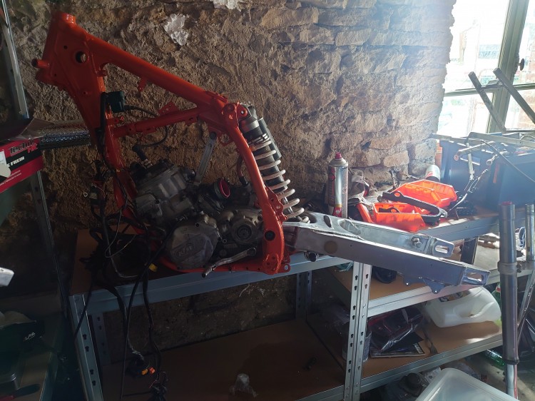 Bonjour a tous , Valentin 28 ans , du 25 Doubs . Je possède une KTM 250 egs de 1993 que je suis en train de refaire , je l'ai acheté en pièces , donc j'aurais besoin de votre aide pour me montrer où certain pièces s'installe et comment . Merci a tous . Le voilà en cours de remontage