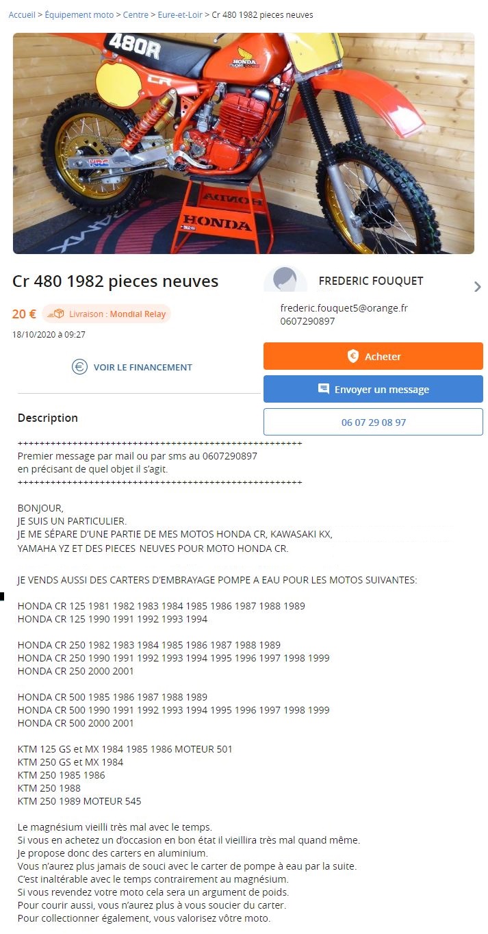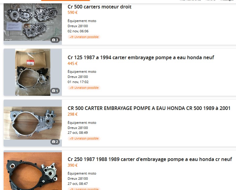 Pour info carter de Honda 250 1987 aluminium acheté sur Partzilla usa quand c’est dispo 160$