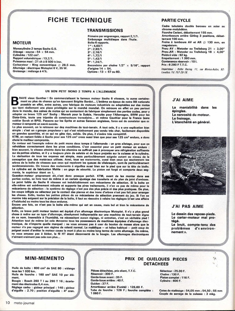 Essai Moto Journal avec un petit mémento technique :