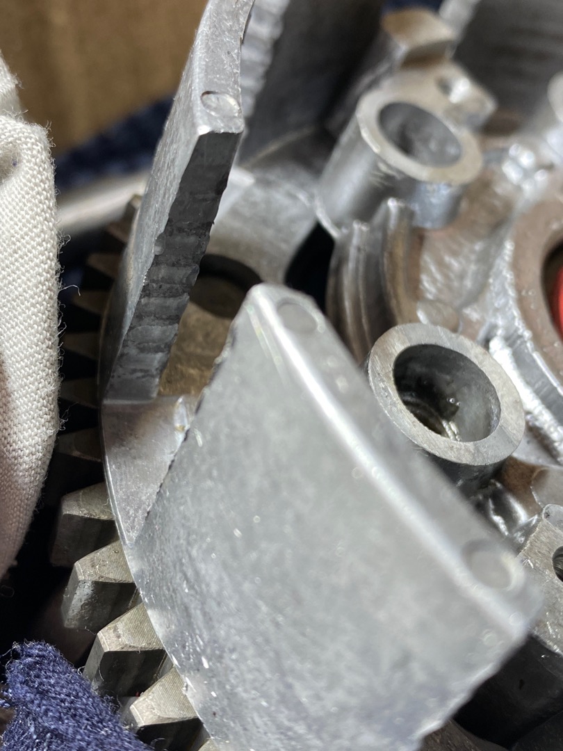 Le carter central gauche a été réparé.. une dent du pignon de kick ( si quelqu'un sait ou je peux en trouver un?) est cassée je pense qu'elle a du casser le carter en se logeant dans la vis qui dépasse.