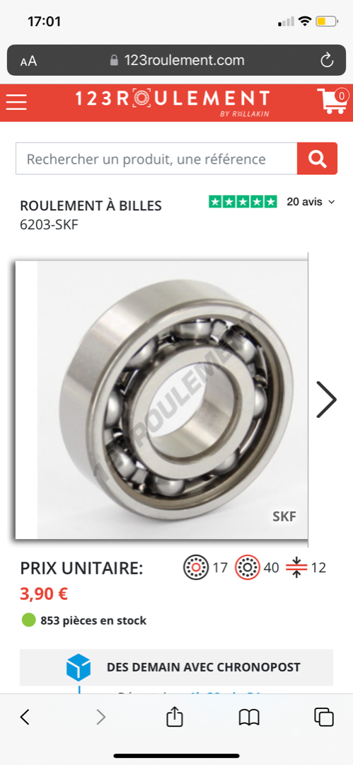 Après des recherches , je trouve des roulements sur Internet de la même référence que ceux présent dans mon moteur ( ex : roulement 6202/ 6205 ) à des prix bien plus bas