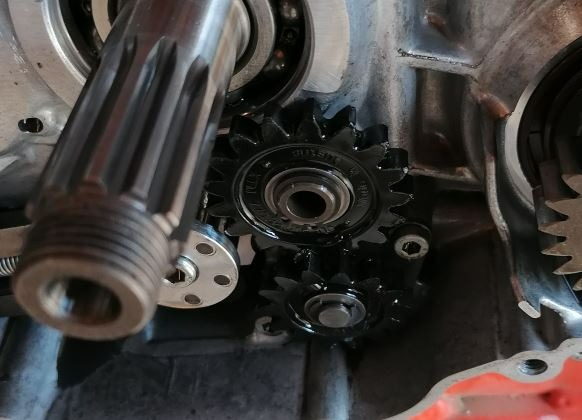 Or, les 2 pignons (pignon d’axe de pompe + pignon entre pompe et axe d’embrayage) sont en plastiques et ce sont apparemment les mêmes sur une bonne partie de la gamme KTM. Et je constate sur internet que ce phénomène de casse est courant.