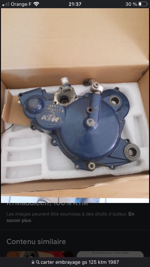 Bonjour à tous, j’ai mon carter d’embrayage qui est abîmé et j’ai trouvé une annonce avec un carter en deux parties qui me semble être exactement pareil mais j’aimerai en être sur… Mon carter d’origine est similaire le bleu. Pourriez vous m’aider svp. cordialement