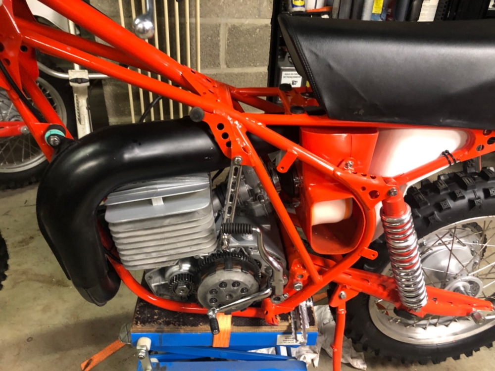 Après avoir rassemblé des pièces d'origines et fait l'achat de pièces neuves, je vais faire repeindre le cadre, le bo et les 2 fourreaux de la fourche, avec le RAL 2002