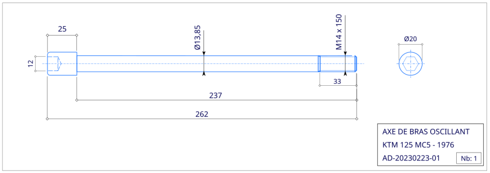 L'axe de bras oscillant doit être le même de 73 à 78 sur bras acier pour toutes les cylindrées.