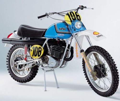 Bien que donnée sur le site de 1975, ça pourrait bien être l'authentique moto d'Harald Strössenreuther lors des Six Jours 76 (vu le numéro 106). Série spéciale Stockelmeier ? Gros réservoir (pour les Six Jours), pas de plaque latérale, fourche déportée, amortos ... D'autres originalités ?