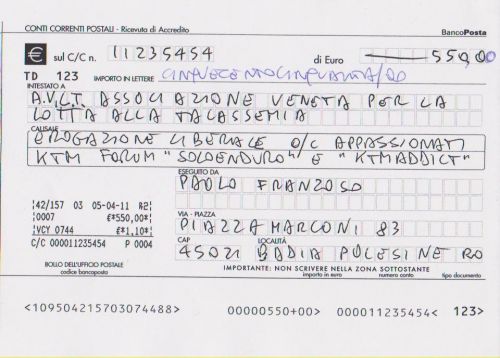 Aujourd'hui j'ai pourvu à exécuter le paiement de 550.00 euro, en faveur de l'Association.