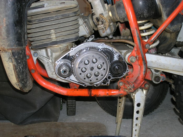 J'ai démonté le carter d'embrayage car l'embrayage avait tendance à coller ou bien à patiner dès qu'il y avait trop de charge.