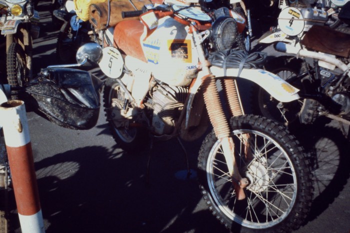 Embarquement à Sète en janvier 1982, deux KTM 240, avec le réservoir de mon kit Afri-KTM !