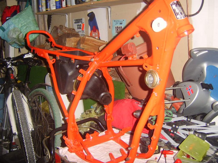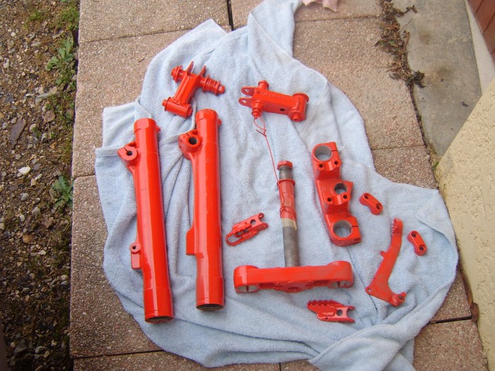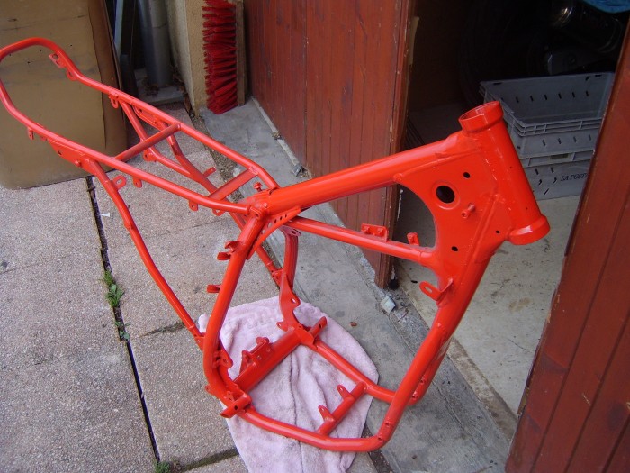 le nouveau cadre part cette apres midi au sablage quelqu un a la reference peinture pour la bequille merci