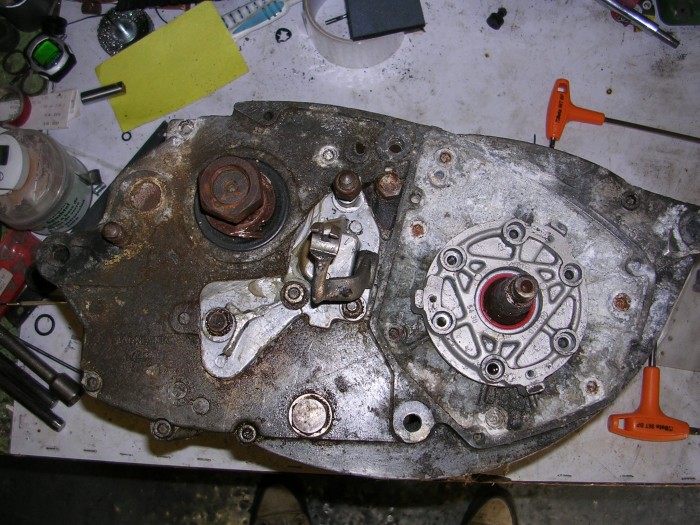 en ré ouvrant les carters de la 125 (pour l'histoire du calage de roulement de sortie de vilo)