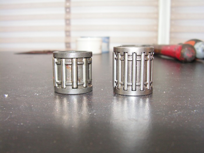 Sur les photos, c'est mon piston de 420...et la cage aiguille que j'ai acheté...diamètre 20mm..longueur 27mm...y'a du jeu avec l'axe...ensuite, 2 cages aiguille...la plus petite c'est pour un axe de piston 390 diamètre 18mm longueur 24mm...et l'autre c'est celle la 20x27...