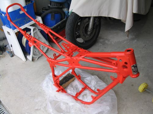Pour le cadre peinture Epoxy (four) par pro en teinte RAL 2002. Tu file ton cadre au gars avec la boucle AR et les cales pieds et la pédale de frein (attachées par un ch'tit fil de fer). Pour un cadre complet ça m'a couté 120€.