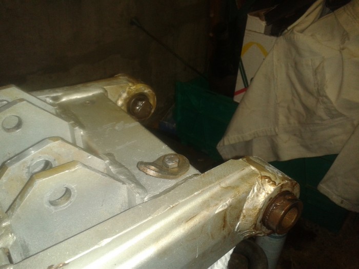 ca venait un peu (voir photo) mais il fallait insister . perso , je fait bouger ca au burineur pneumatique , avec des guides pour ps echapper l'outil . Dans ce cas j'ai pis une vis de 10 tete de 17 6pans dans la bague . Le burineur choque et decolle le gripage . J'ai sorti tous les axes comme ca: de la balle .