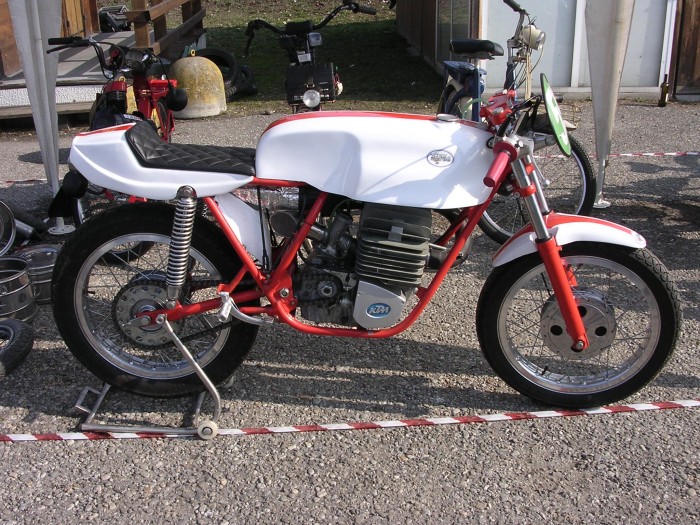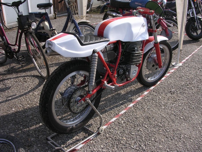 On a discuté qques instants avec le vendeur , il en voulait 2000 € , mais il était prêt à la lâcher pour 1600 . Le moteur de base est un 390 de 81 suralésé en Angleterre à 500 cc ... ça doit dépoter grave ...