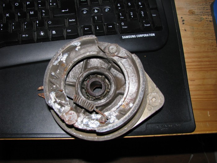 demontage de la roue ,les deux garnitures décollées au fond du tambour et oui les garnitures avaient 35 ans elle ont chauffées et ce sont décollées, j'immagine pas la gamelle sur une ligne droite , après un tremplin et pour les GS sur le bitume : pour le prix de neuves ça n'en vaut pas la peine
