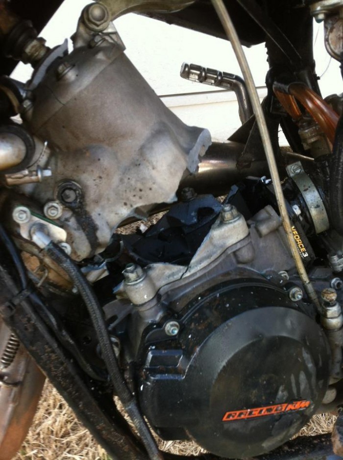 eh oui, volant moteur trop allégé, boite à clapets Vforce, moteur très (trop) préparé... :/ prise de tour de dingue, mais à 10 000 tours, la bielle résiste pas longtemps...