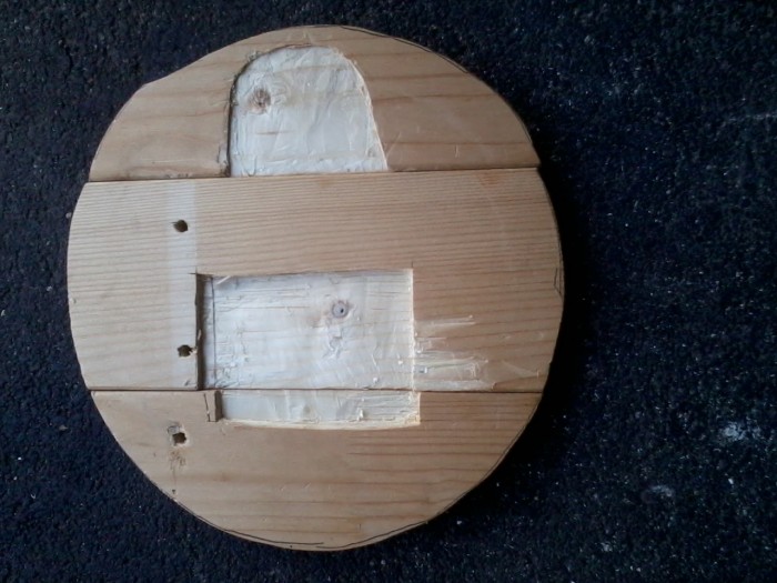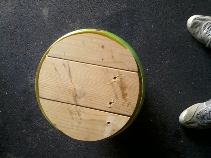 avec un bidon d'huile (25L) vide j'ai découper un rond dans des planche et je les et tailler pour laissé passer la poignet et le bouchon