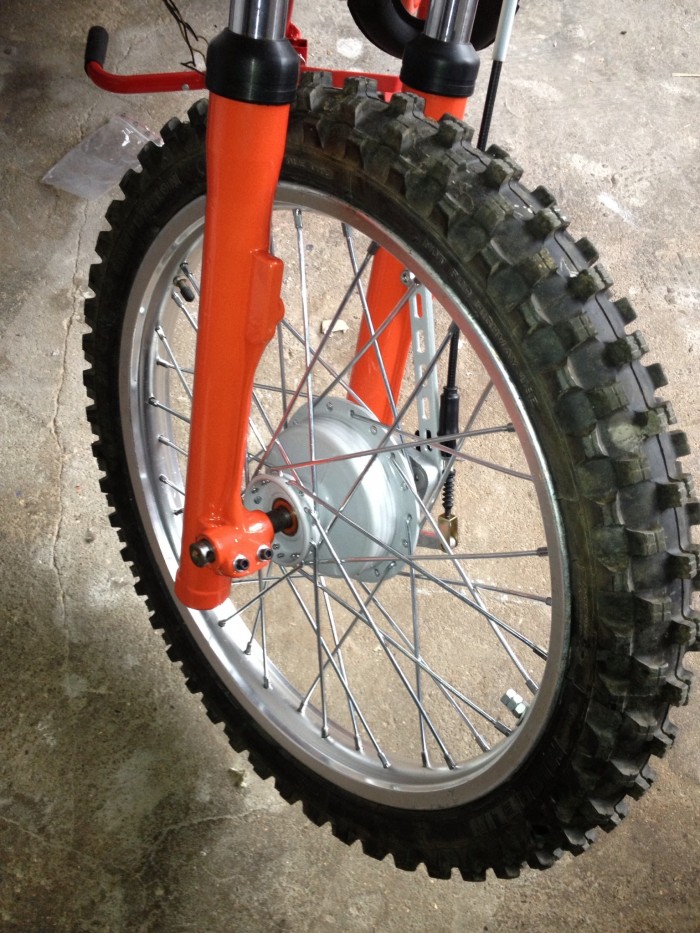 Par contre lors d'une prise de chemin j'ai trouvé le train avant flottant, disons pas rassurant et j'ai constaté un manque de rigidité de la fourche...( en torsion)