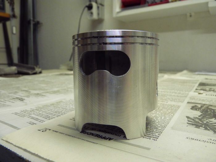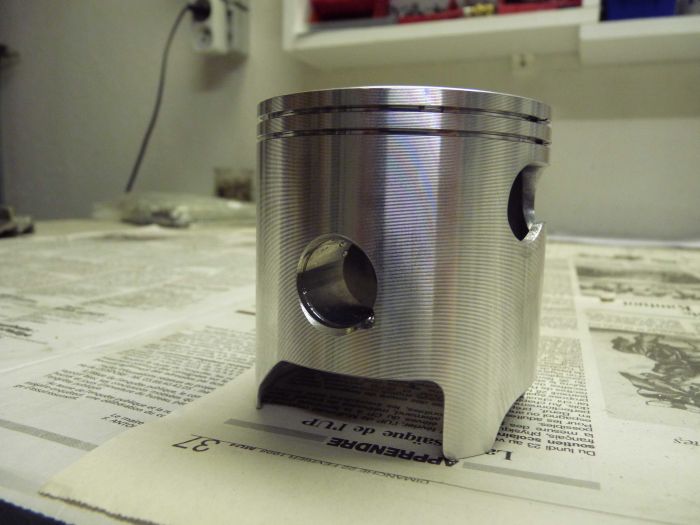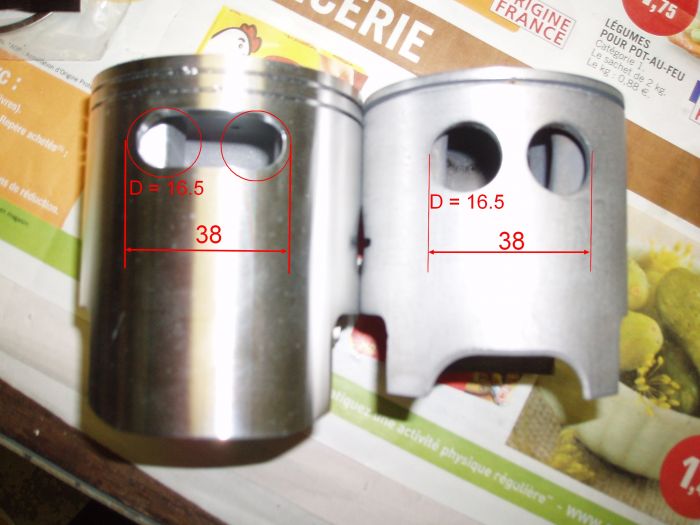 Ensuite, il faut retailler les lumières d'admission et faire une découpe au bas de la jupe à l'identique du piston 542. Je te mets des photos explicatives.