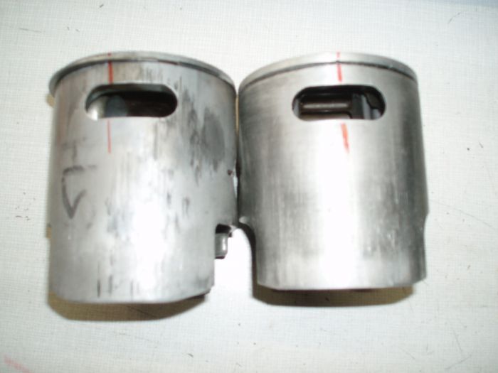 Sur les pistons "541", alésage ovale, un seul trou, le pion n'est pas forcément situé au même endroit (photo merdique, mais utilisable :