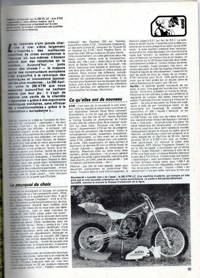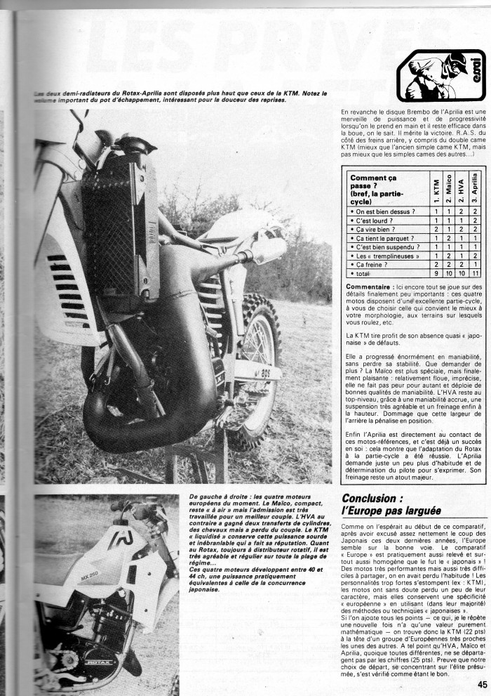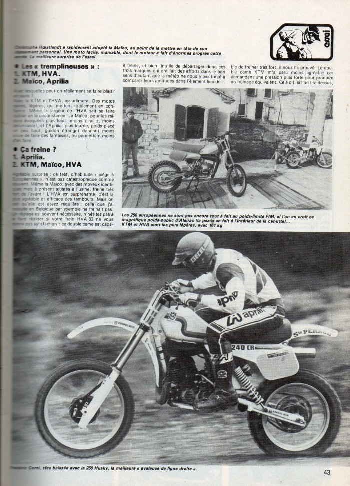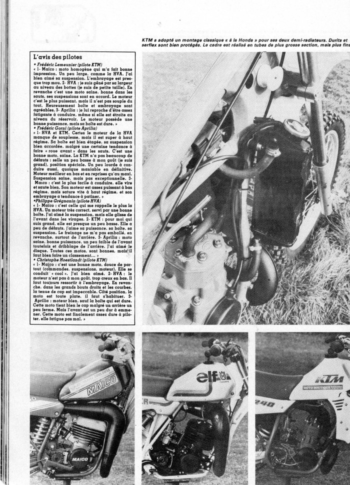 COMPARATIF 250 CROSS 83 : KTM; HVA; MAICO; APRILIA
